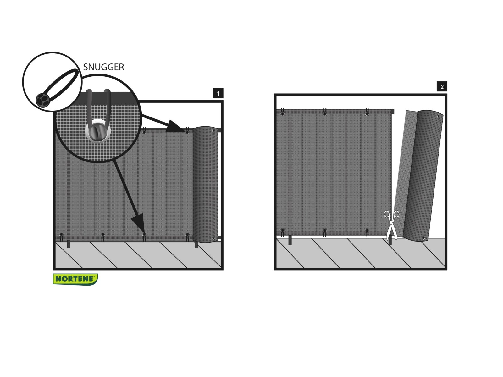 Javasoljuk, hogy a rögzítőket karóhoz, oszlophoz vagy merev támasztékhoz, például erkélykorláthoz vagy hálóhoz rögzítse. A belátáskorlátozók nem kerítés helyettesítők, használatukhoz azonos magasságú támrendszer szükséges.